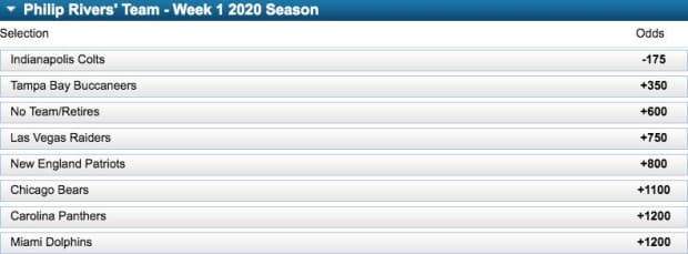 Bettors may want to stay away from Carolina as a possible landing spot for Rivers. That is primarily due to Panthers' new head coach Matt Rhule suggesting Cam Newton will remain in Carolina and regain the starter role if he is healthy. The Panthers training staff has been impressed by Newton's dedication during rehab, and he is expected to pass his physical in late March. The Panthers also re-signed Kyle Allen to a one-year contract, and he is expected to back up Newton.